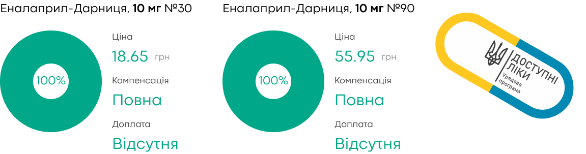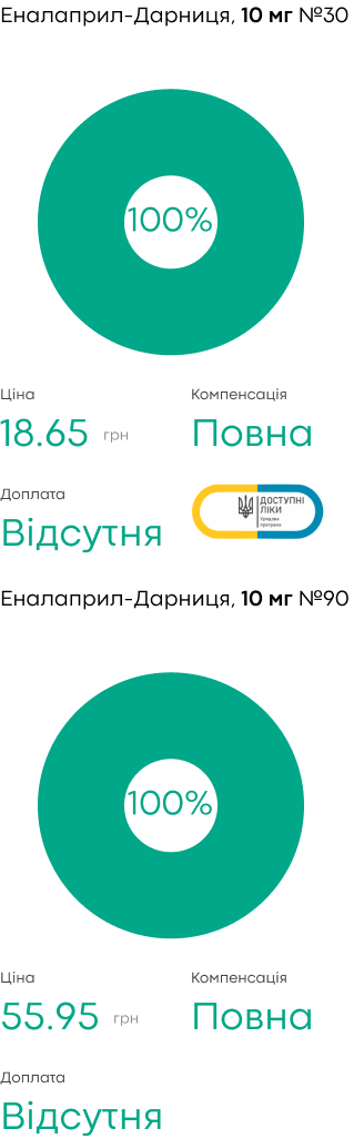 - ¹ Згідно з інструкцією препарату ЕНАЛАПРИЛ-ДАРНИЦЯ